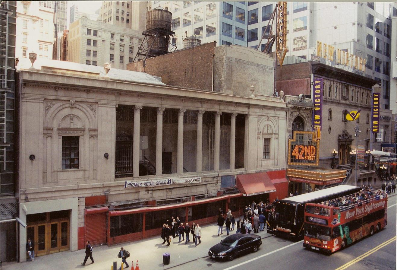 | The legitimate era of the Apollo lasted until 1933, and after being forced into bankruptcy during the Depression, the Apollo became home to Minsky's Burlesque in late 1934. By the late 30s, films made a return to the Apollo, and the theater would remain a grind house for decades until the Brandt Organization made an attempt to bring back live theater to the Apollo in 1979, cleaning it up and giving it a new marquee, heralding the New Apollo. Legitimate theater would be short-lived, since in 1983, the Apollo returned to screening movies. Apollo's last incarnation would be as the Academy, a concert hall. For this, the theater's orchestra level seats were removed and the floor leveled, though the balcony seating remained intact. The original decor was uniformly covered in a dull white paint. In 1996, after its days as the Academy ended, most of the Apollo's architectural elements were removed, including the spectacular dome from the auditorium ceiling, to be reused in the Ford Center for the Performing Arts (recently renamed the Hilton Theatre), which would be constructed on the site of the Apollo and neighboring Lyric Theatres upon their demolition. - Information from the website CinemaTreasures |