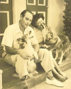 Dorothy with Herman, getting a kiss from her dog ca late 1940's/50's)