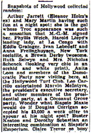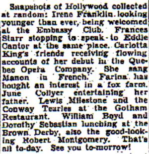 | Here are just a few of the 'gone but not forgotten' Hollywood hangouts that were frequented by Dorothy and other stars. Click on the smaller images to make them bigger. |